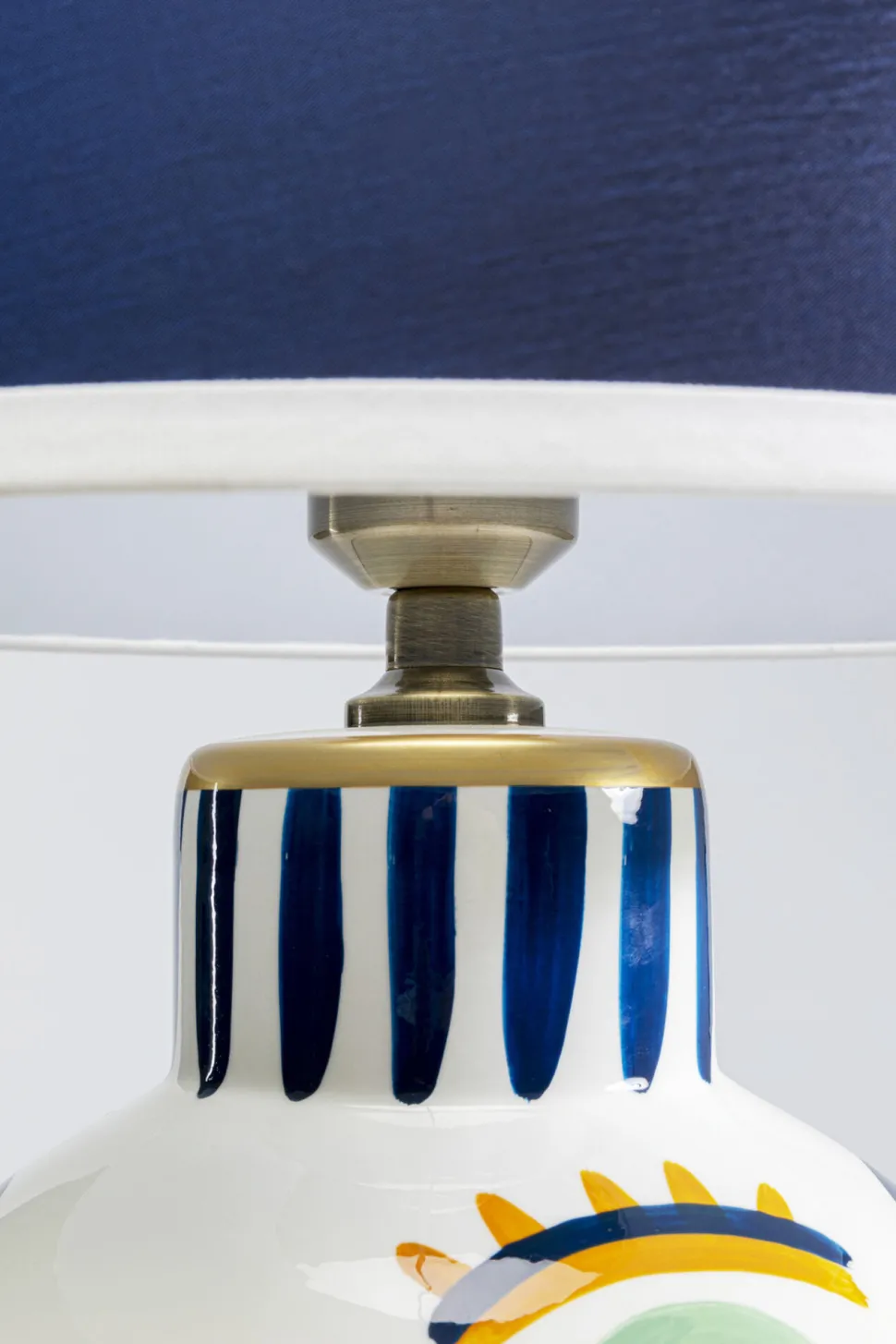 - Tischleuchte in Weiß und Blau mit abstraktem Motiv, 65 x 38 x 38 Zentimeter (H/B/T)