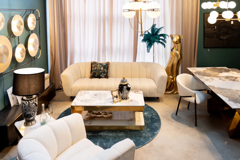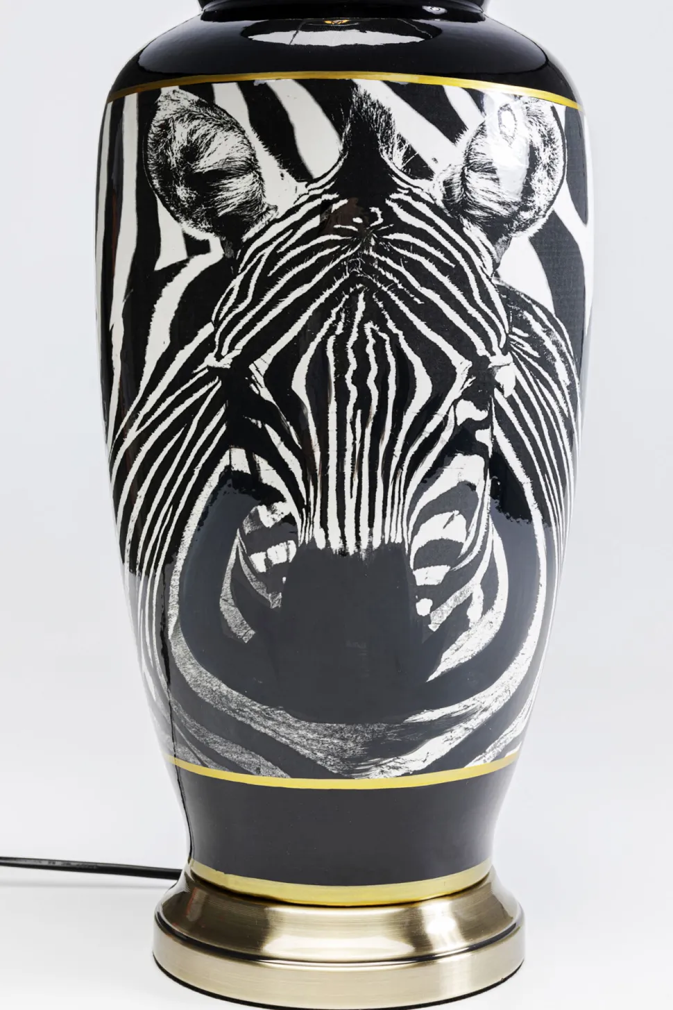 - Der Sockel aus Porzellan begeistert mit seinem glänzenden Finish, kunstvollen Zebra-Motiv und glamourösen Gold-Details