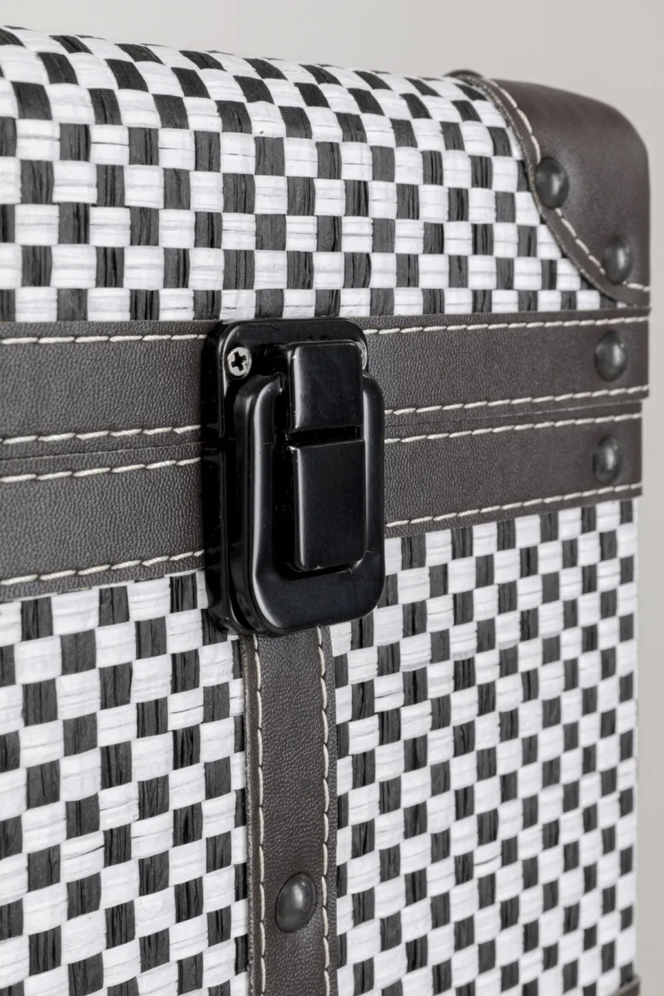 - Set aus 4 karierten Truhen mit Klappdeckel in Schwarz-Weiß