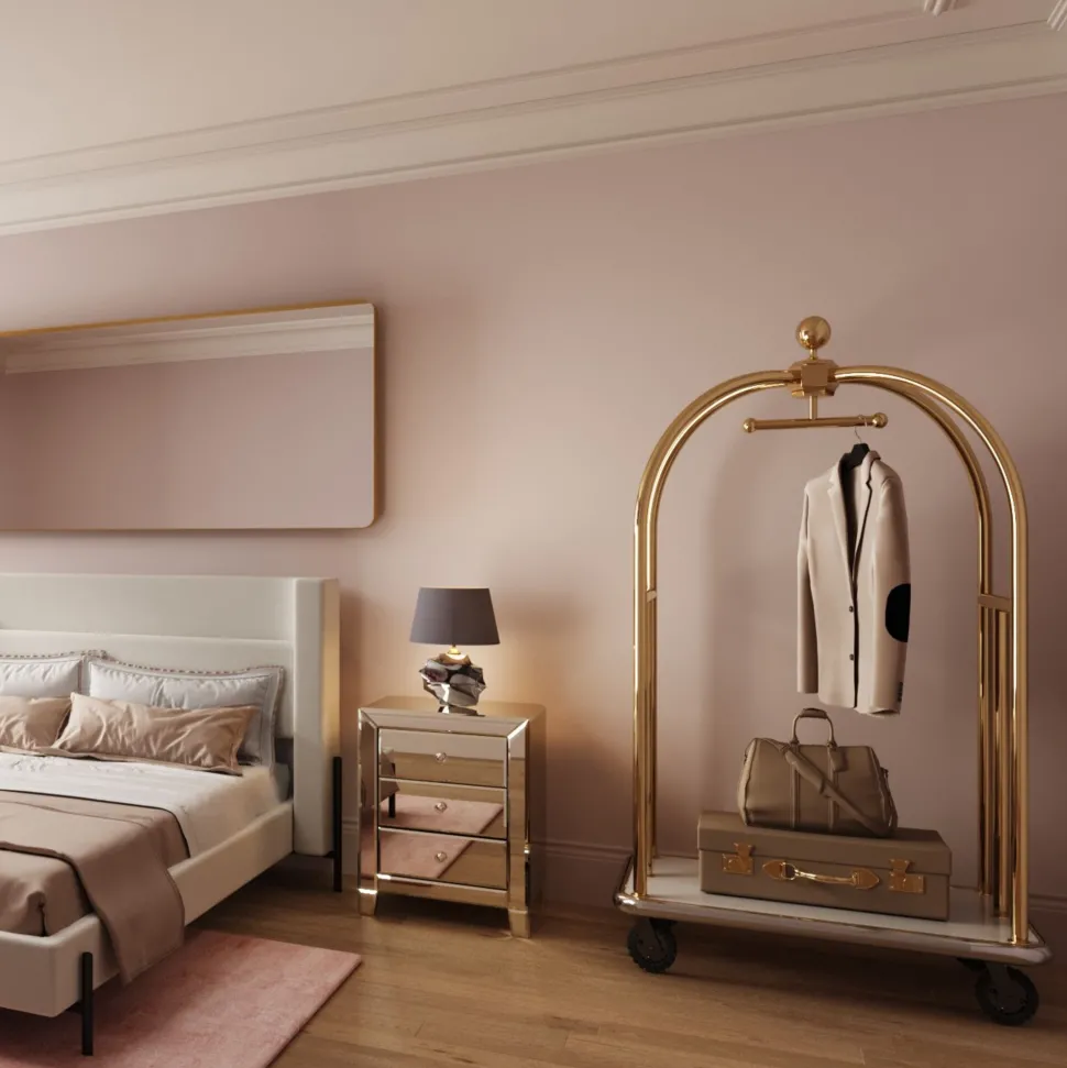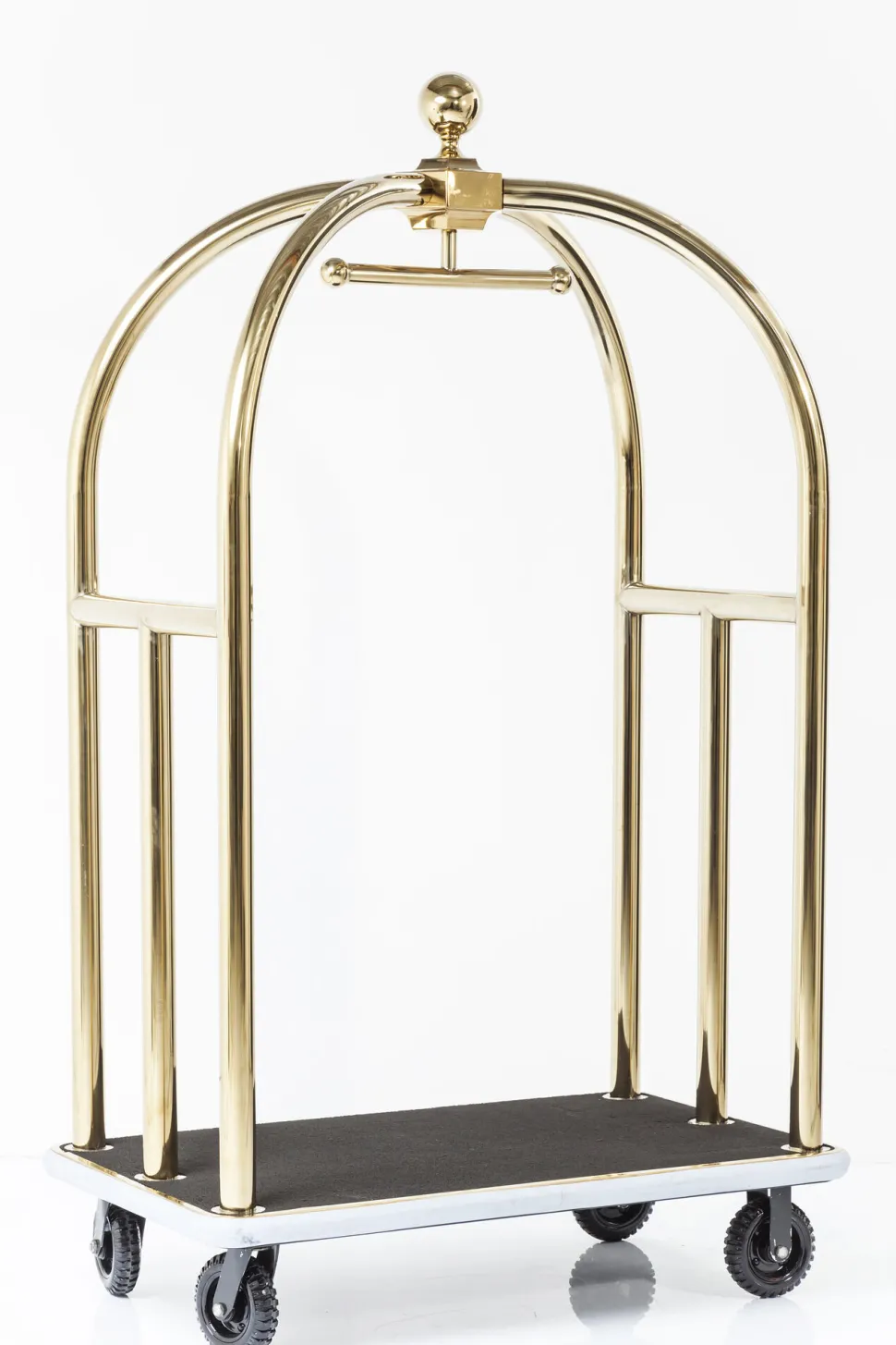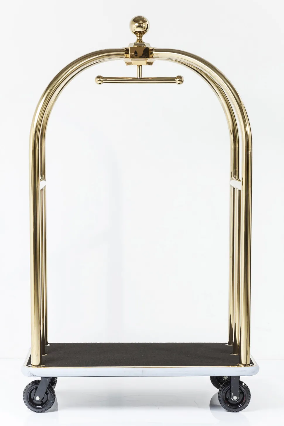 - Der gold-glänzende Kofferwagen sorgt für die luxuriöse Note im Ambiente