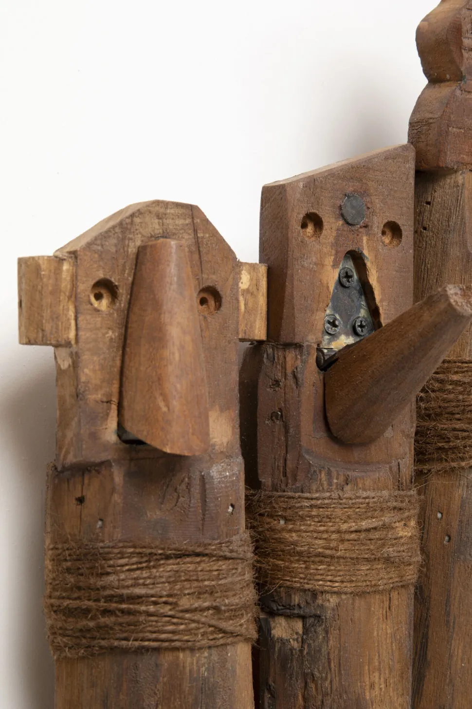 - Diese große Garderobe begeistert mit abstrakten Gesichtsmotiven und rustikaler Holzoptik