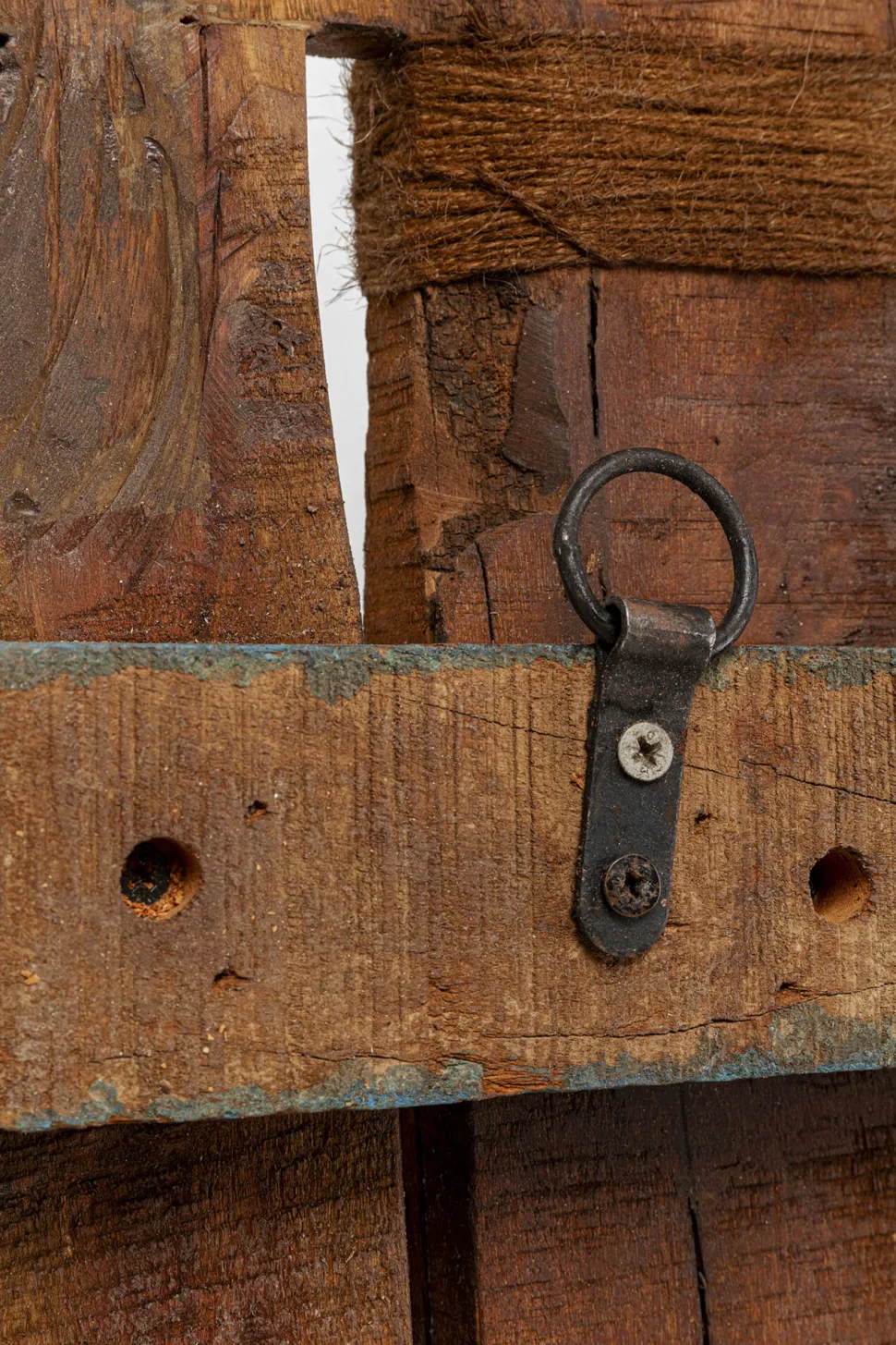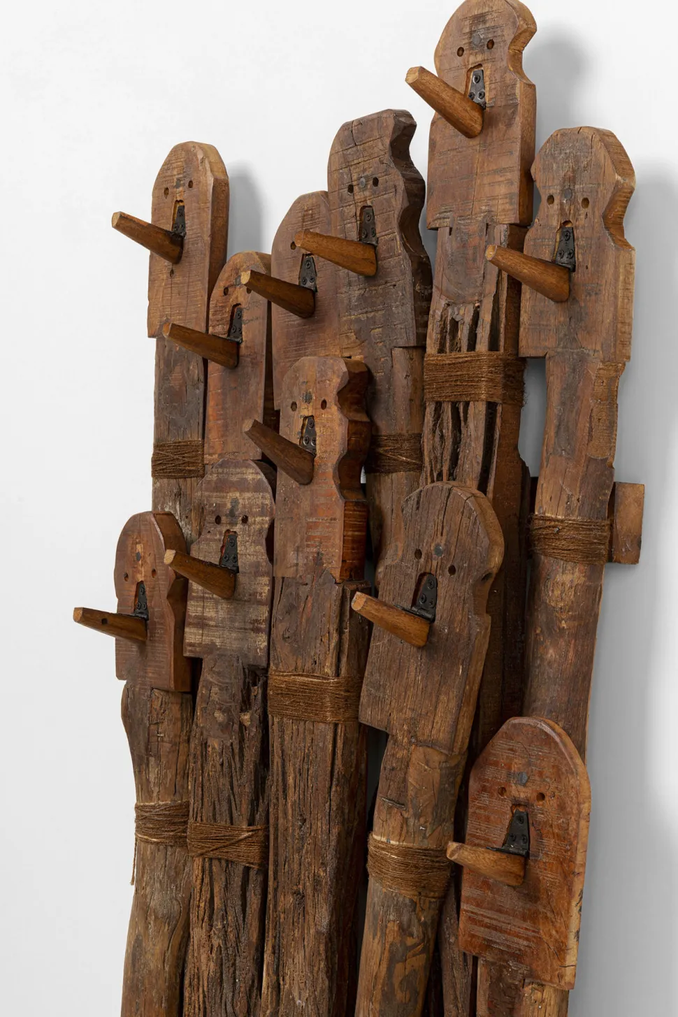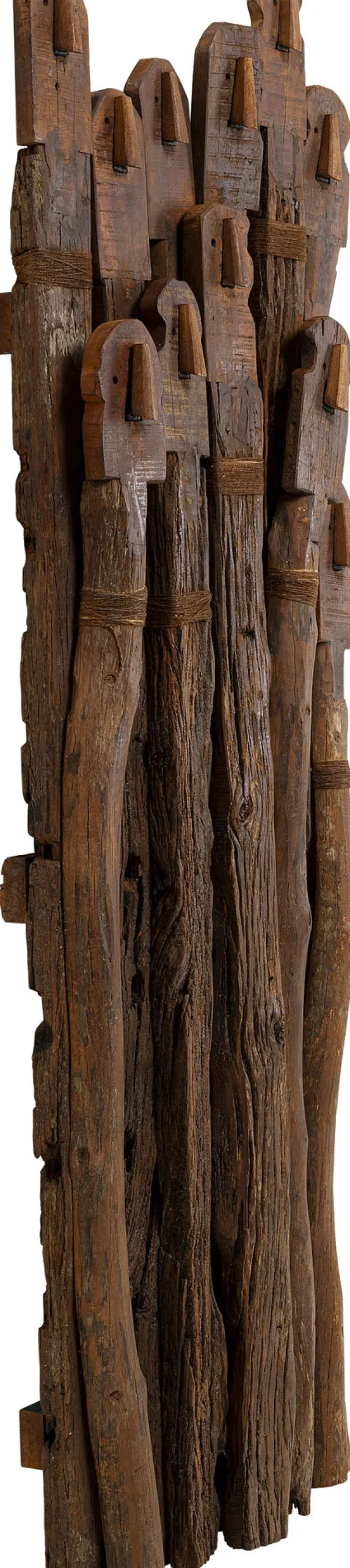 - Diese große Garderobe begeistert mit abstrakten Gesichtsmotiven und rustikaler Holzoptik