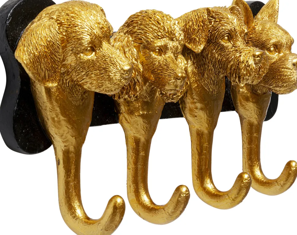 - Ausgefallene Wandgarderobe mit Hunde-Motiv in Gold und Schwarz, 15.5 x 30.5 x 7.5 Zentimeter (H/B/T)