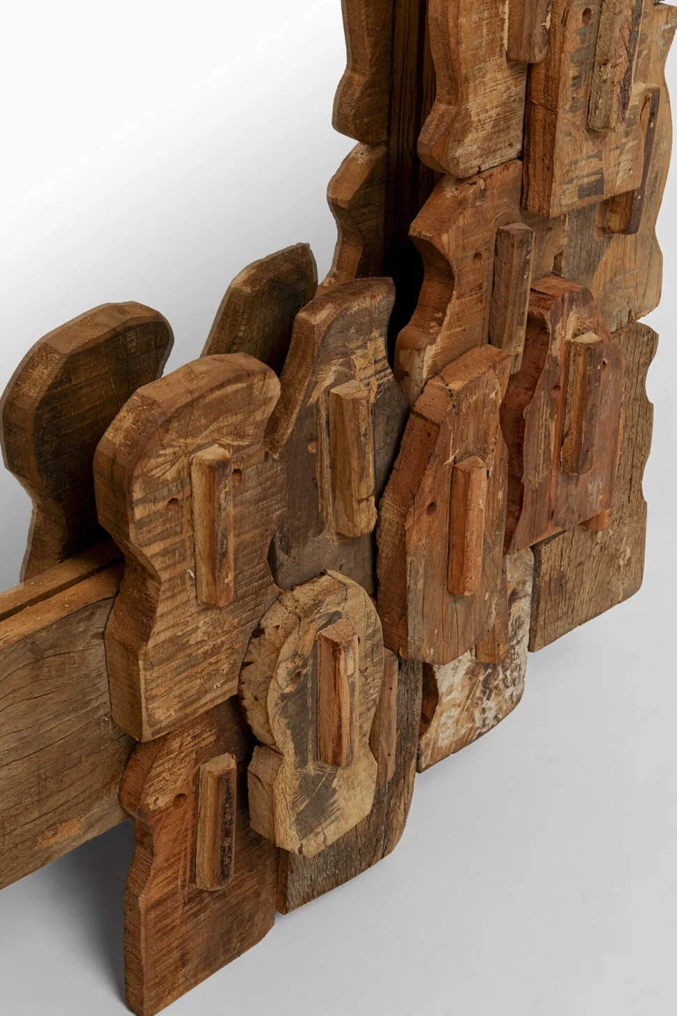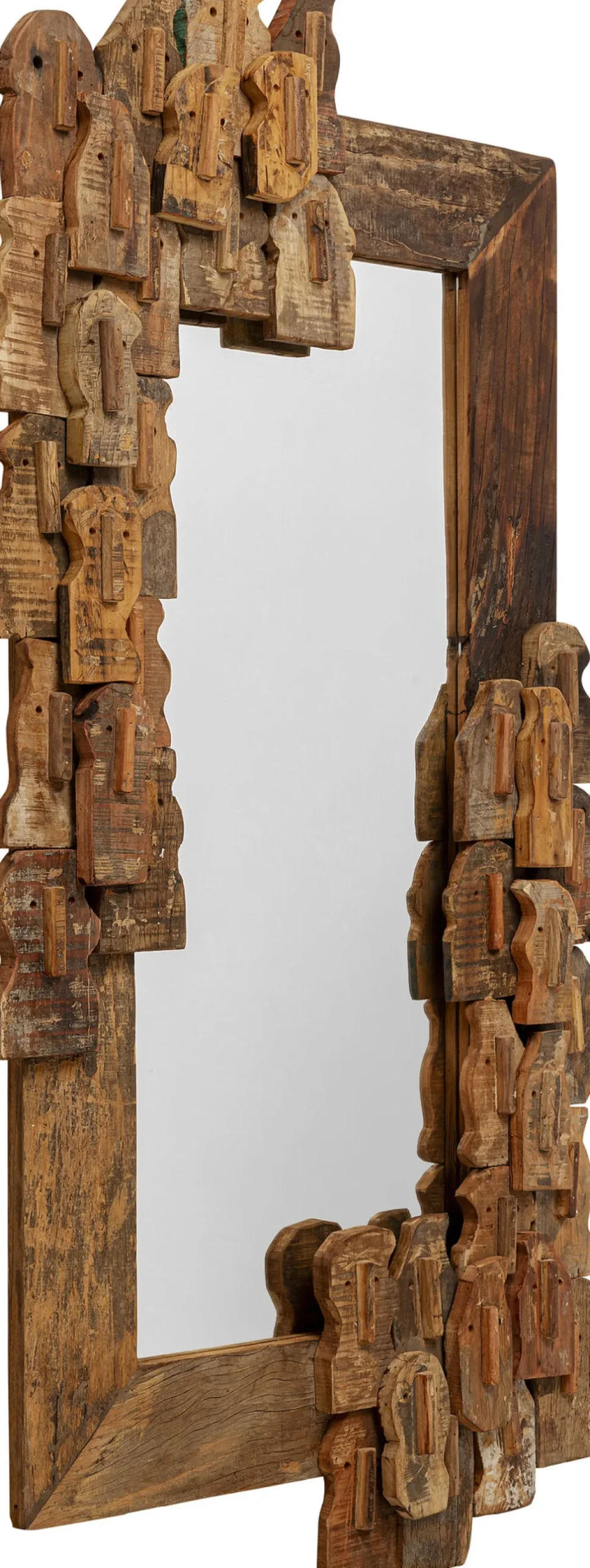 - Ein Spiegel mit kunstvollen Applikationen mit abstrakten Gesichts-Motiven mit spannendem 3D-Effekt