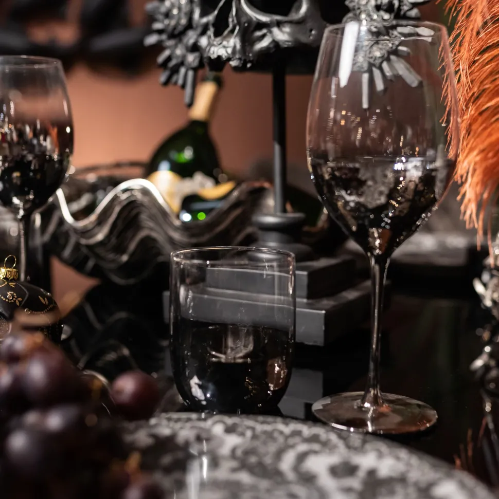 - Handgefertigtes, elegantes Wasserglas, das wie in flüssiges Silber getaucht wirkt