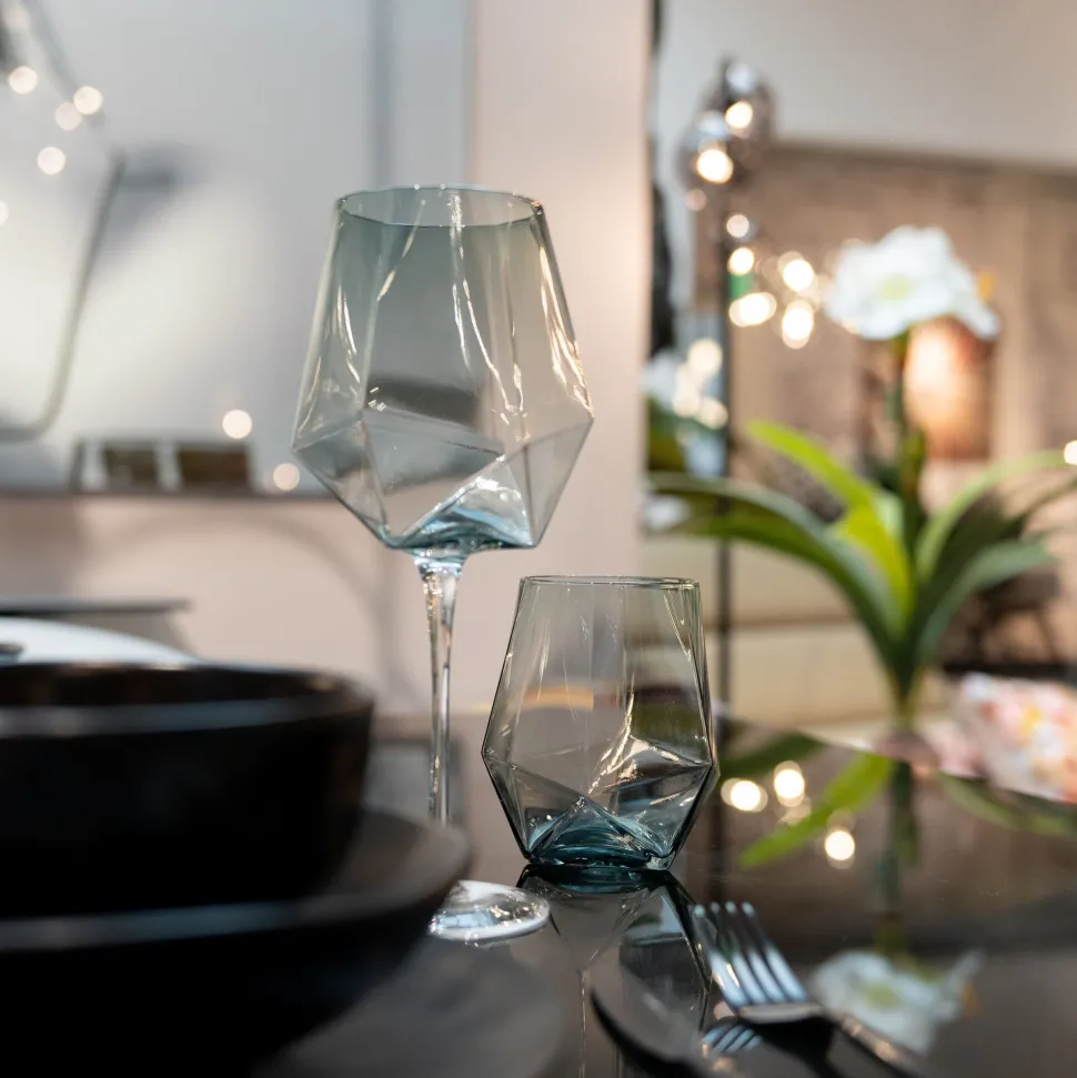 - Wie ein Rohdiamant ist der Kelch dieses Weinglases in transparentem grauen Glas gearbeitet. Spülmaschinenfest